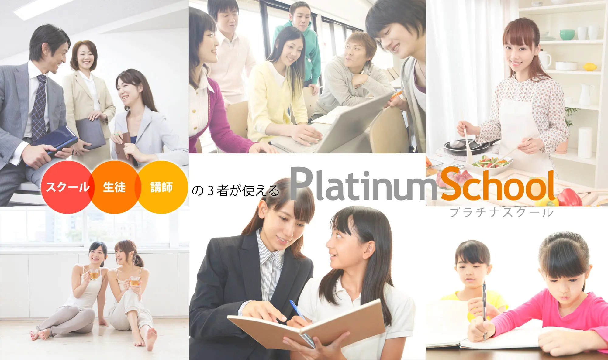 スクール運営の課題をITで解決。プラチナスクールならスクール管理に必須のクラウド機能が全て揃います。オンライン授業もシステム連携可能。